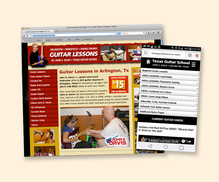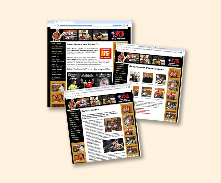 HTML5, CSS and Google “photos” search responsive SEO landing pages for local music school retail client.