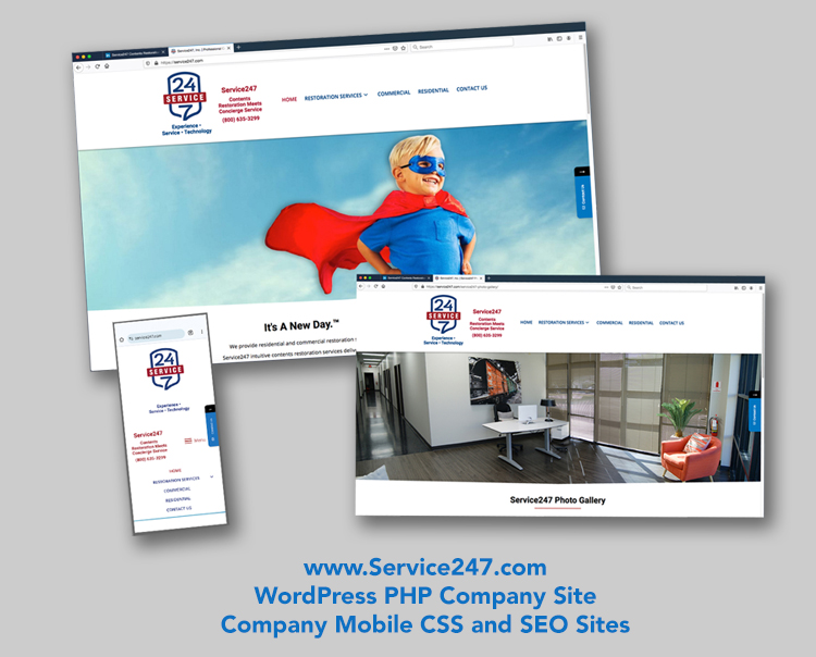 Created with either WordPress 6.5 “Regina”, Adobe Dreameaver HTML5, Shopify CMS or Responsive CSS or WooCommerce and then loaded in to a PHP 8.3 Virtual Server. Click on each sample for an larger graphic image for visual detail.